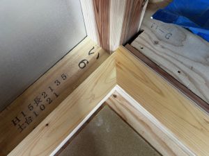 畳よせを造作しています。角をトメ(斜め)で継いでいるので、慎重な作業になります。