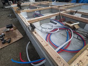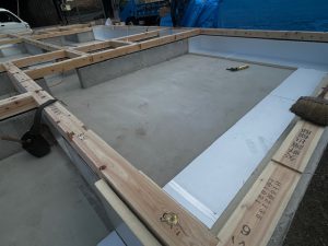 土台を設置しました。この住宅は、基礎断熱の気密工法なので、土台を設置するときに