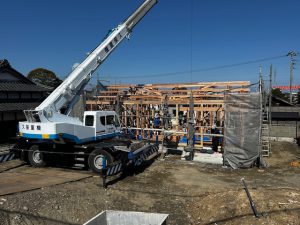 棟上げを行いました。天気にも恵まれ無事終えることができました。