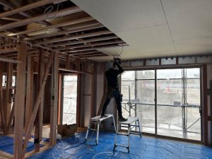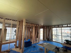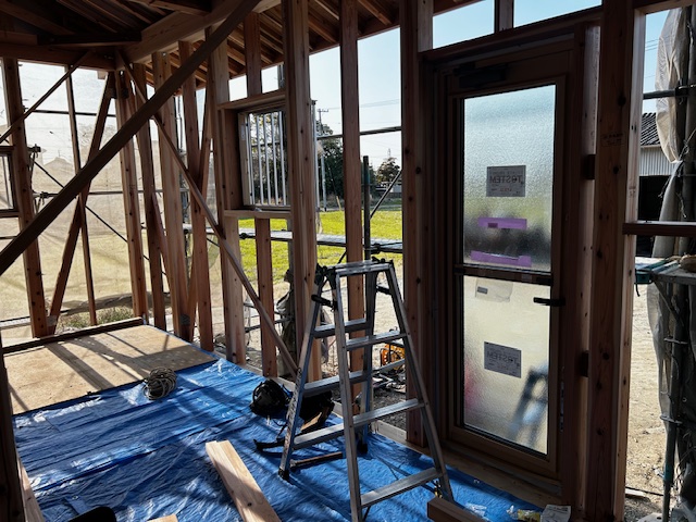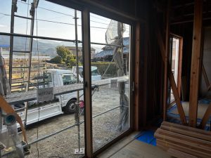 中では、サッシが取り付けれられました。サッシは、トリプルがラスのサッシを採用しています。